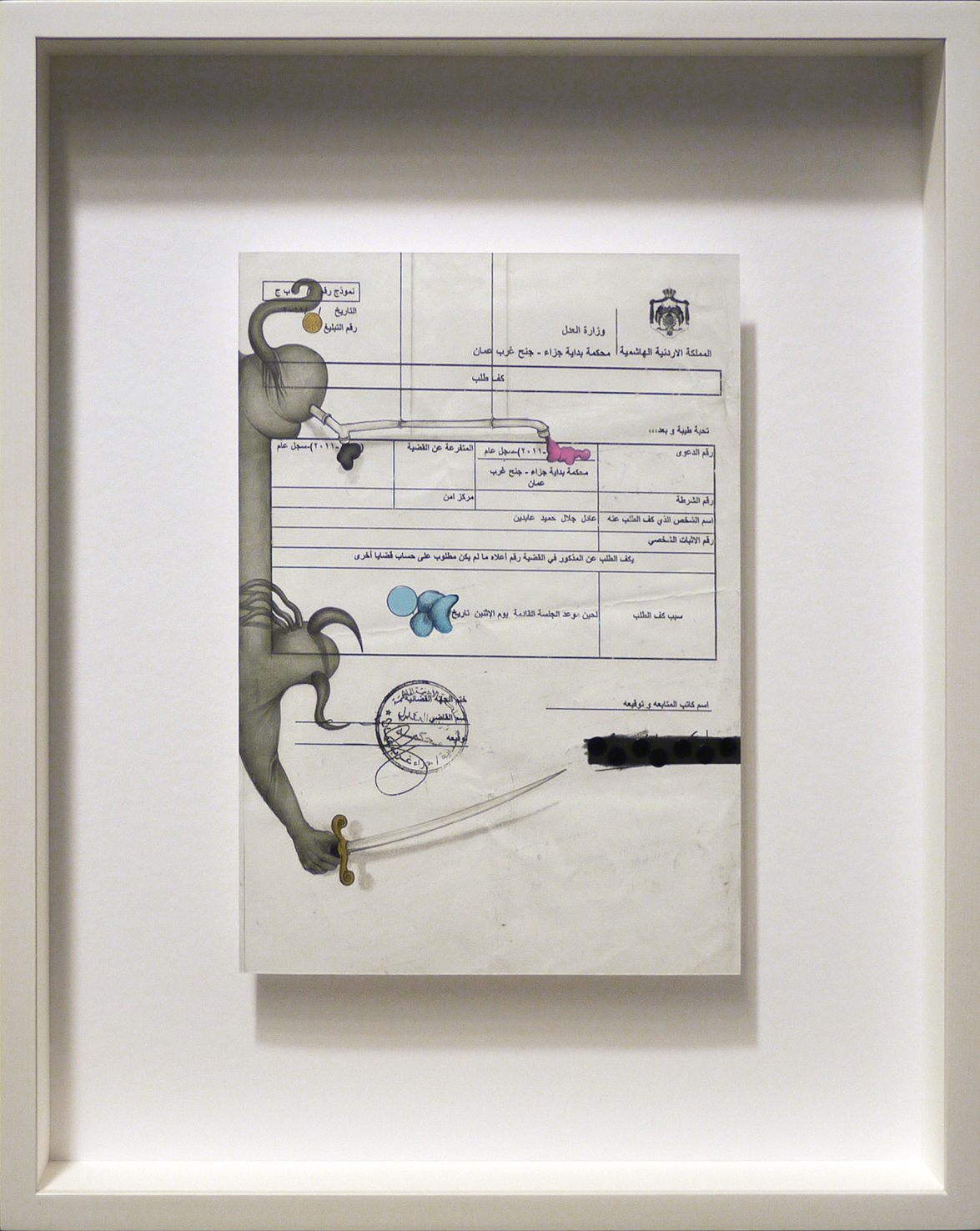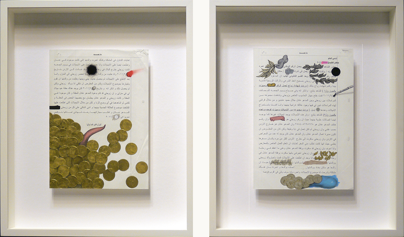 The drawings are made directly onto the original legal papers. Initially, the artist marked the documents to obscure sensitive information such as names, dates, addresses, and identifying details. Over time, these gestures evolved into intentional visual interventions, responding to the tension embedded in the procedural language of the texts.