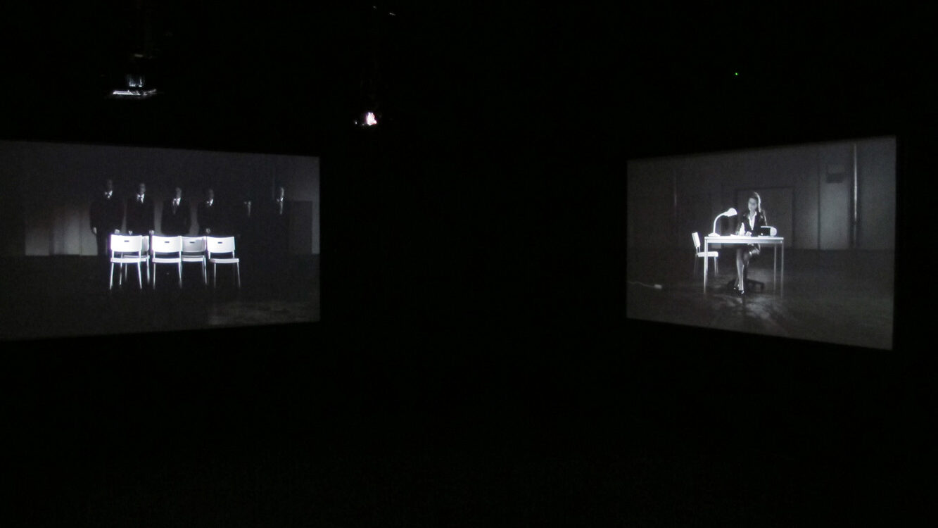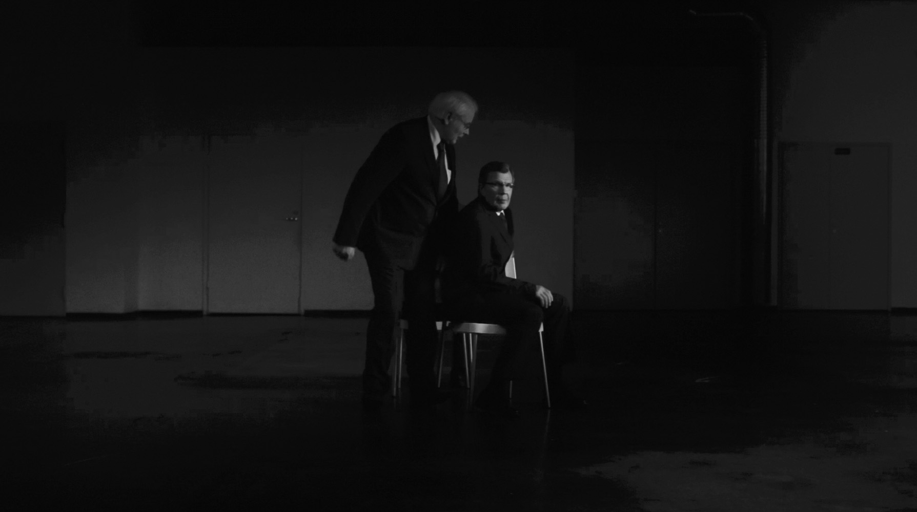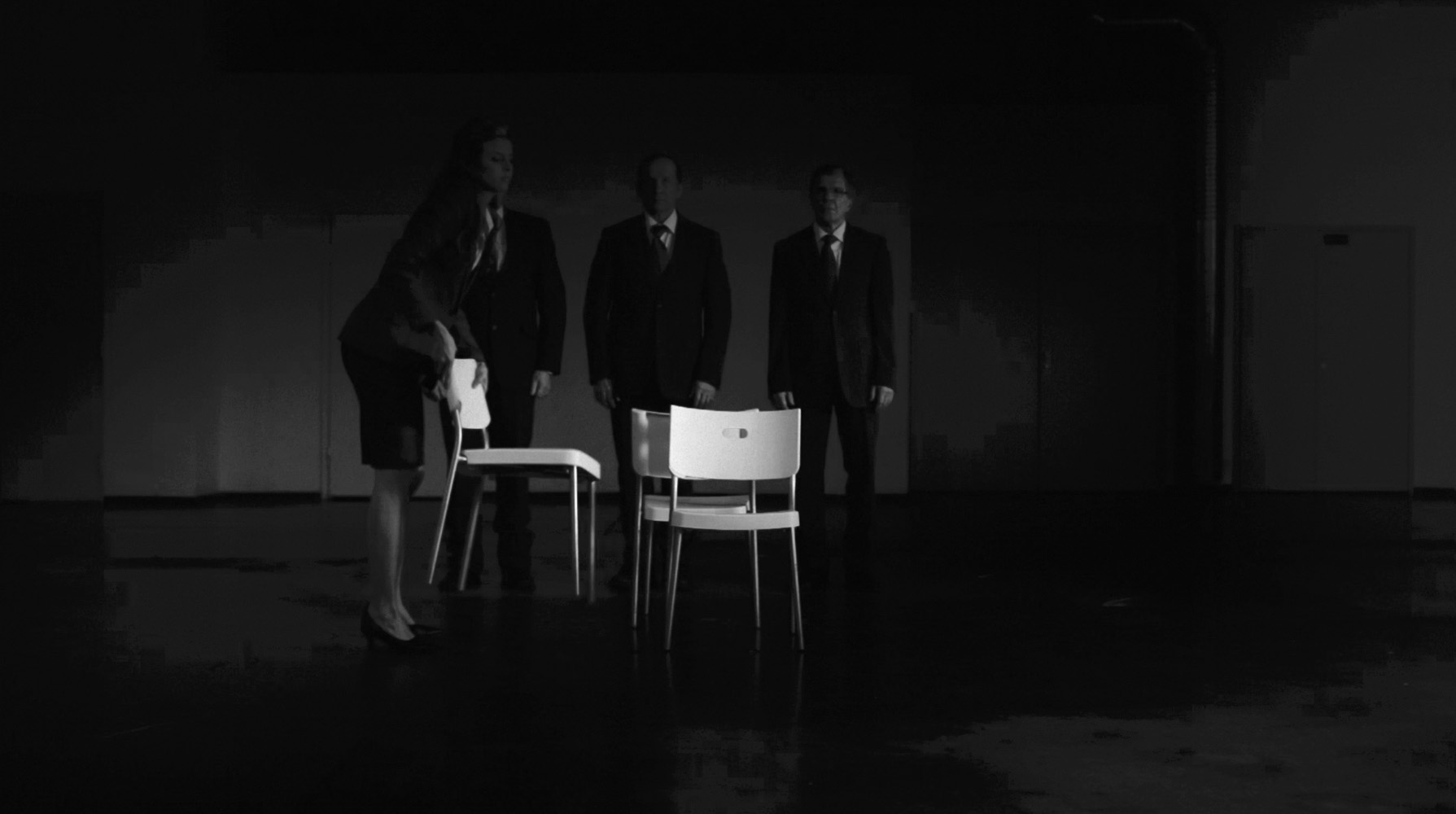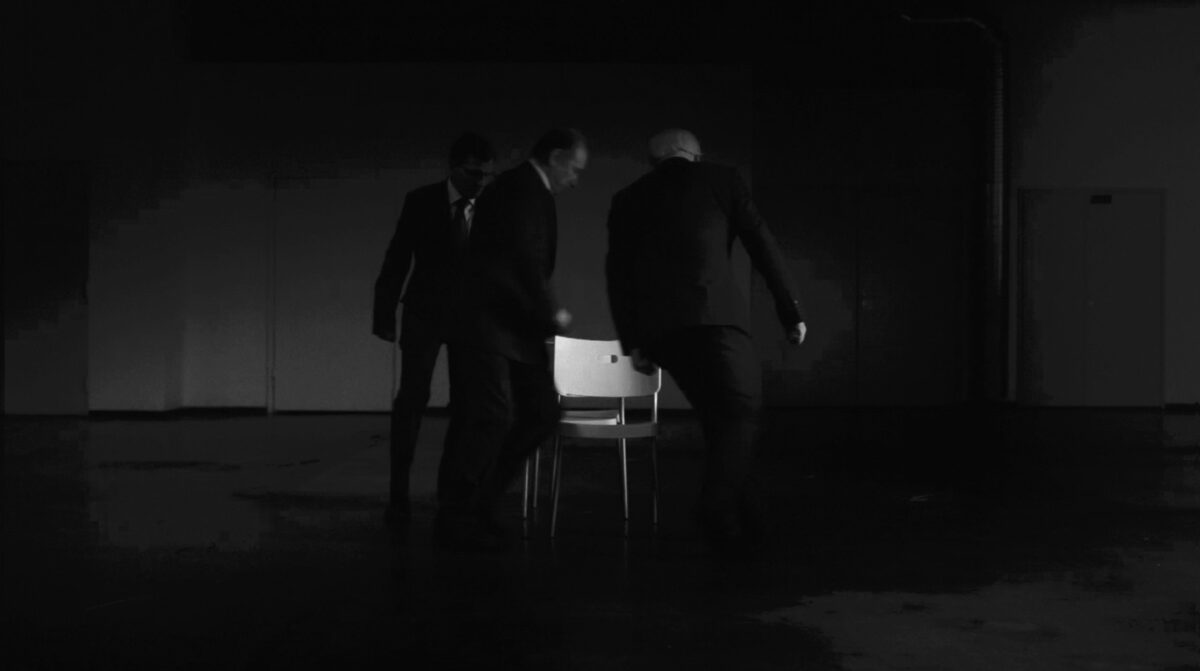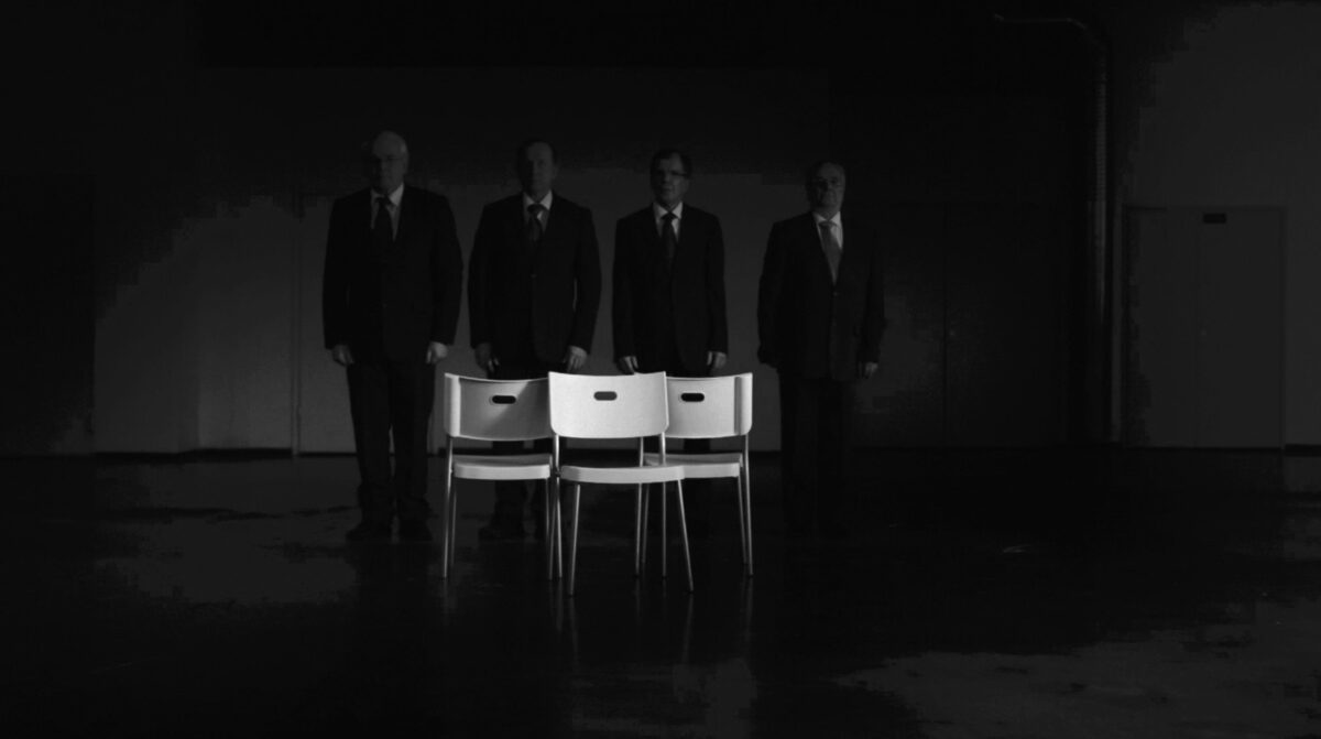 Musical Chairs portrays a group of elderly men in suits playing a competitive game directed by their secretary. What appears ceremonial turns ruthless as each struggles to secure a place and avoid exclusion. The looping structure offers no resolution—only repetition.