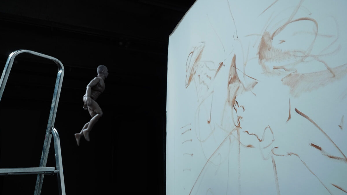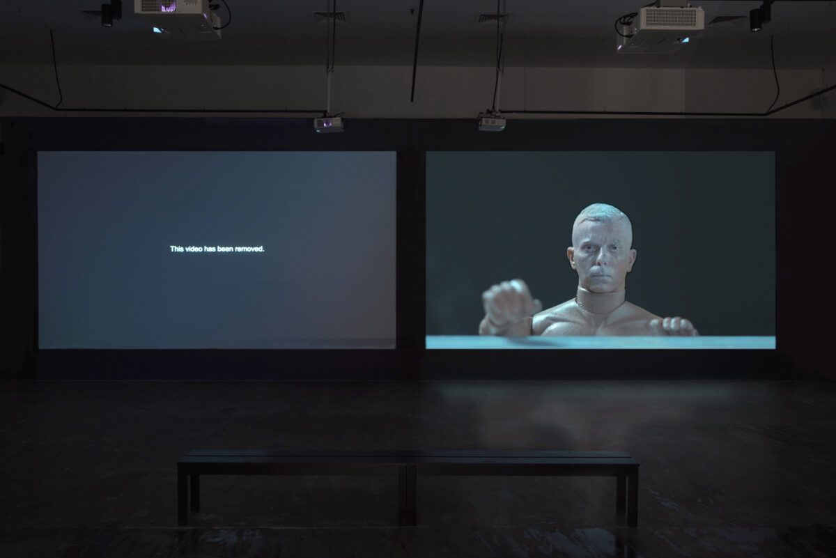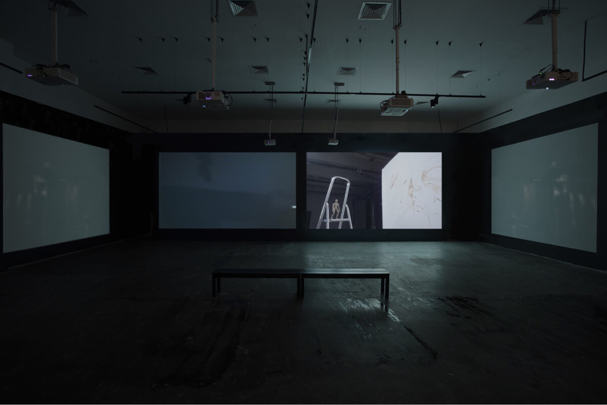 The six-channel installation centers on two visually clear and audible videos—The Ladder and RK7—which represent the past and present of the central figure.