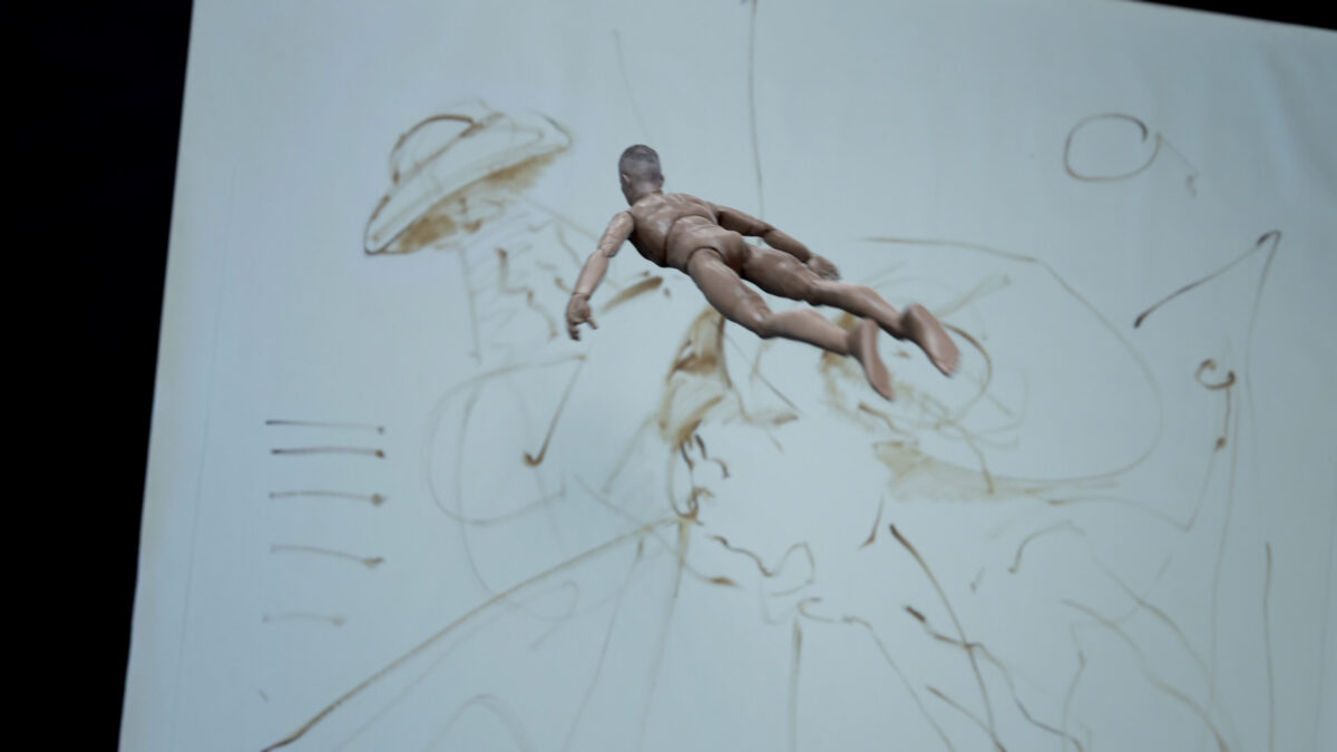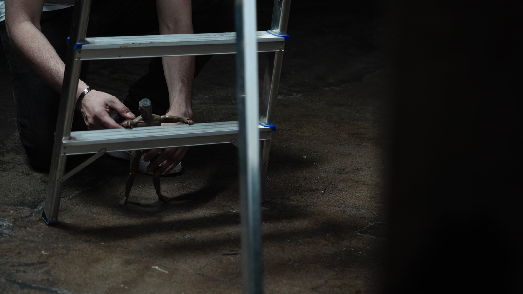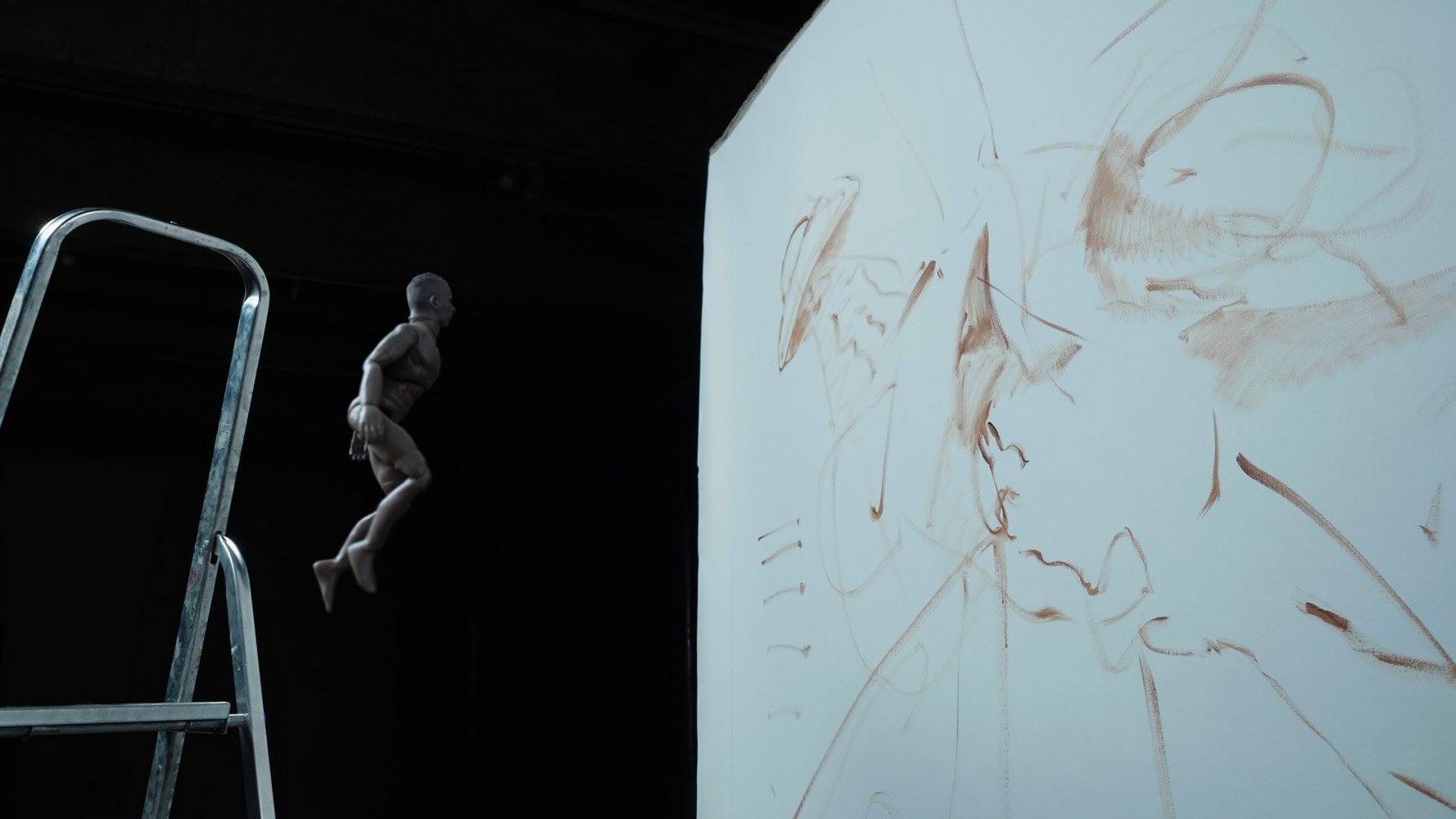 In The Ladder video, the artist physically animates a toy fitted with a 3D-printed replica of his own head, guiding it upward until it becomes independent, flying into a hand-drawn spaceship on canvas. The toy sings newly composed lyrics sourced from well-known pop songs, evoking longing and transformation.