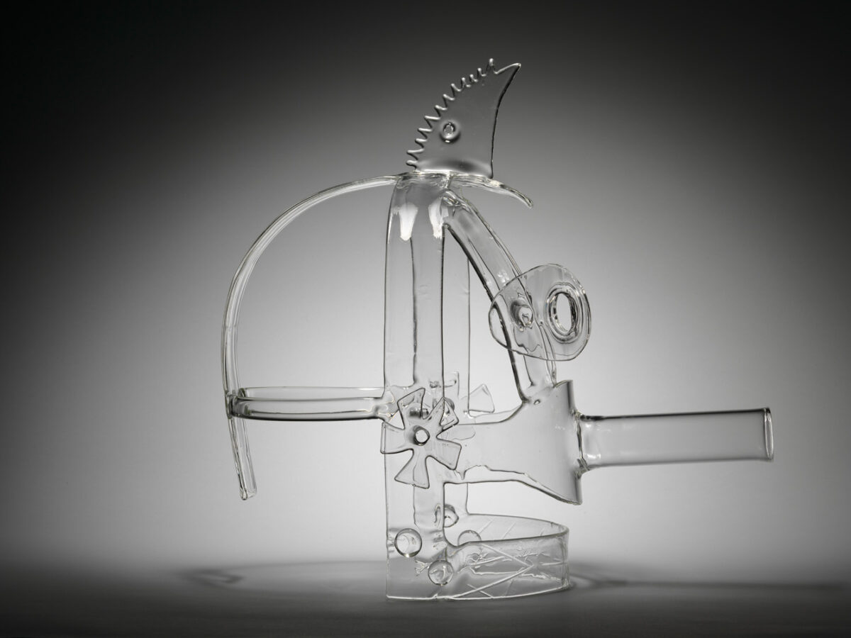 Iron masks used as punishment are reimagined in fragile glass, revealing how fear persists beyond systems of power.