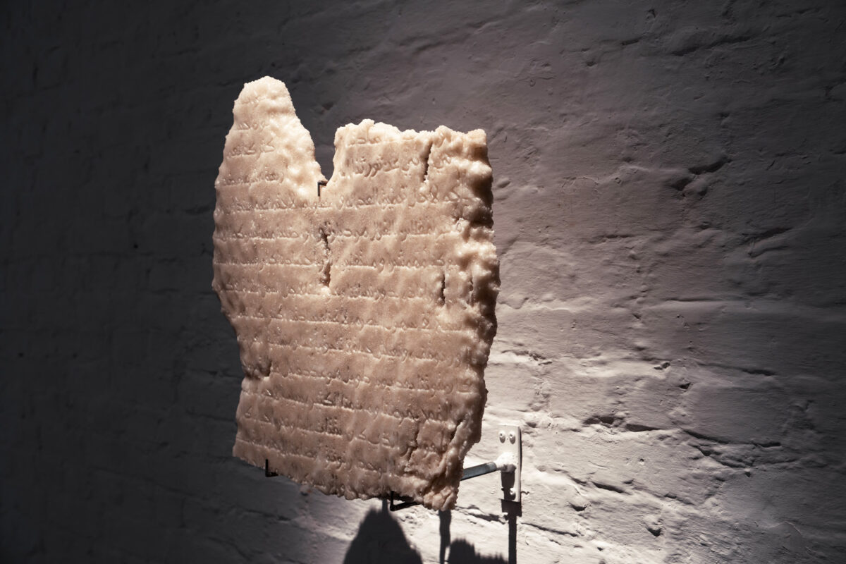 Sculptures carved from natural salt, where material carries memory in the absence of written record.