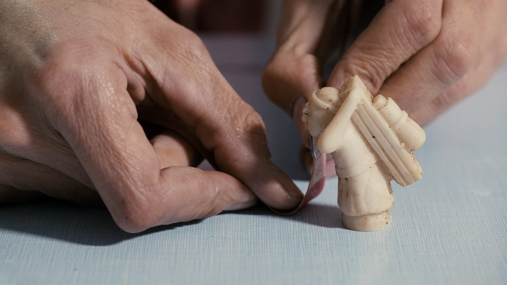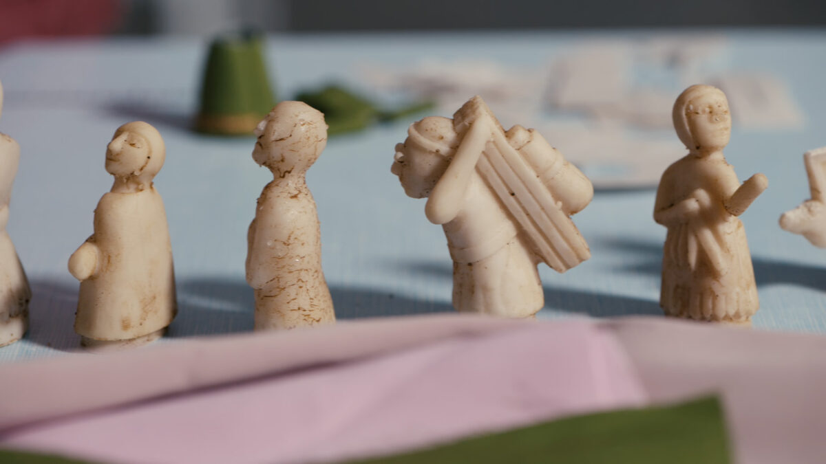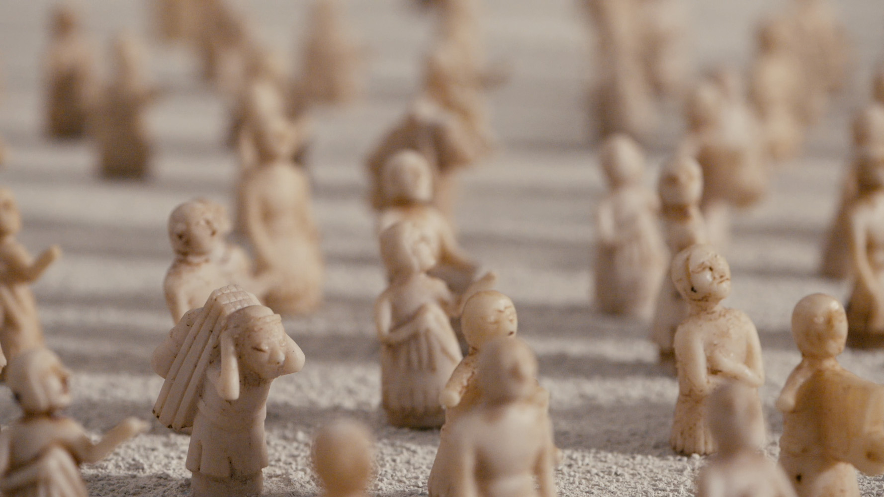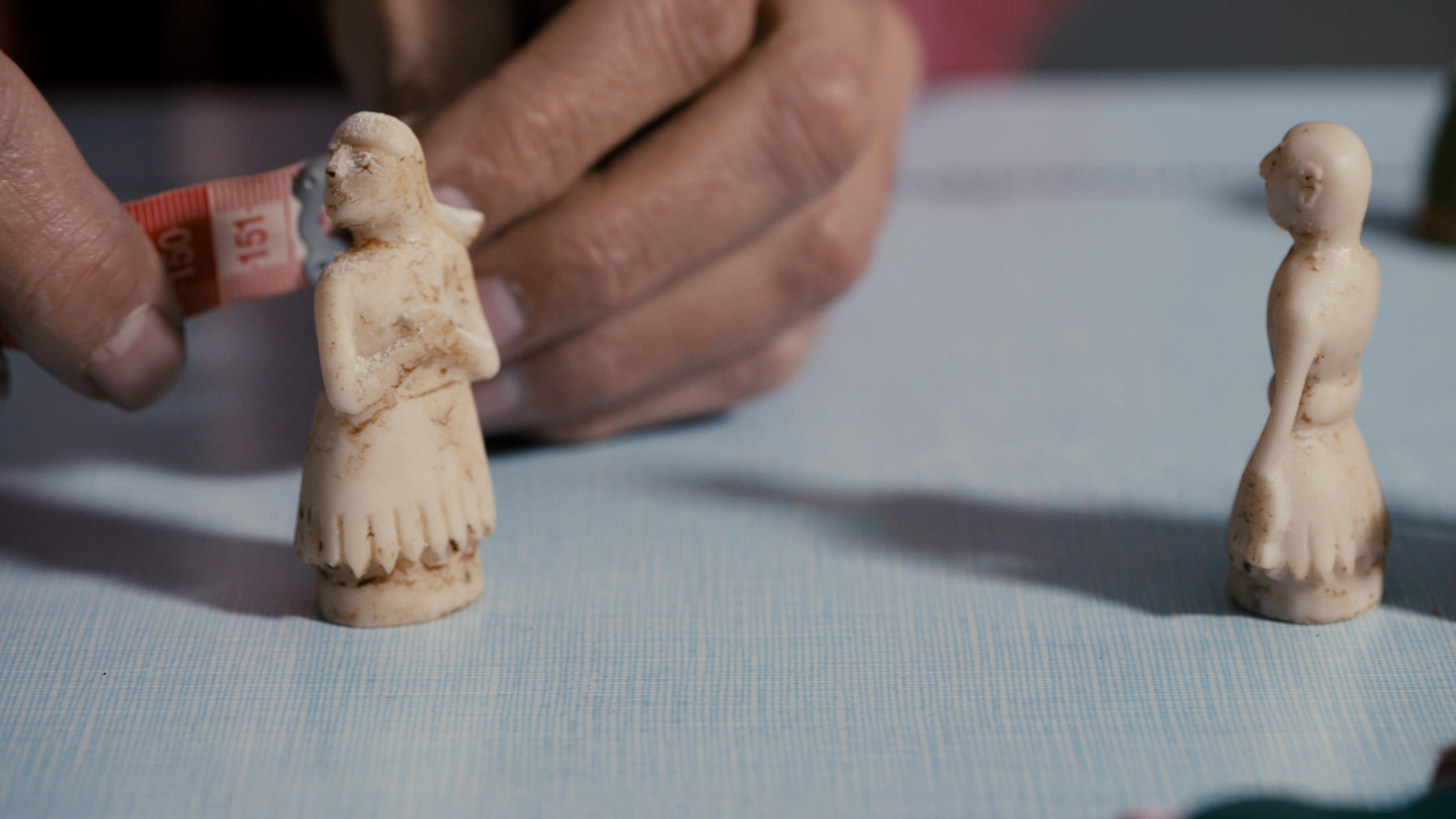 Unfitted follows a tailor as he prepares his tools and carefully measures miniature figurines—characters who have abandoned their ancient home, the Standard of Ur. With clinical precision, he records each body as if preparing to remake them through contemporary clothing.
