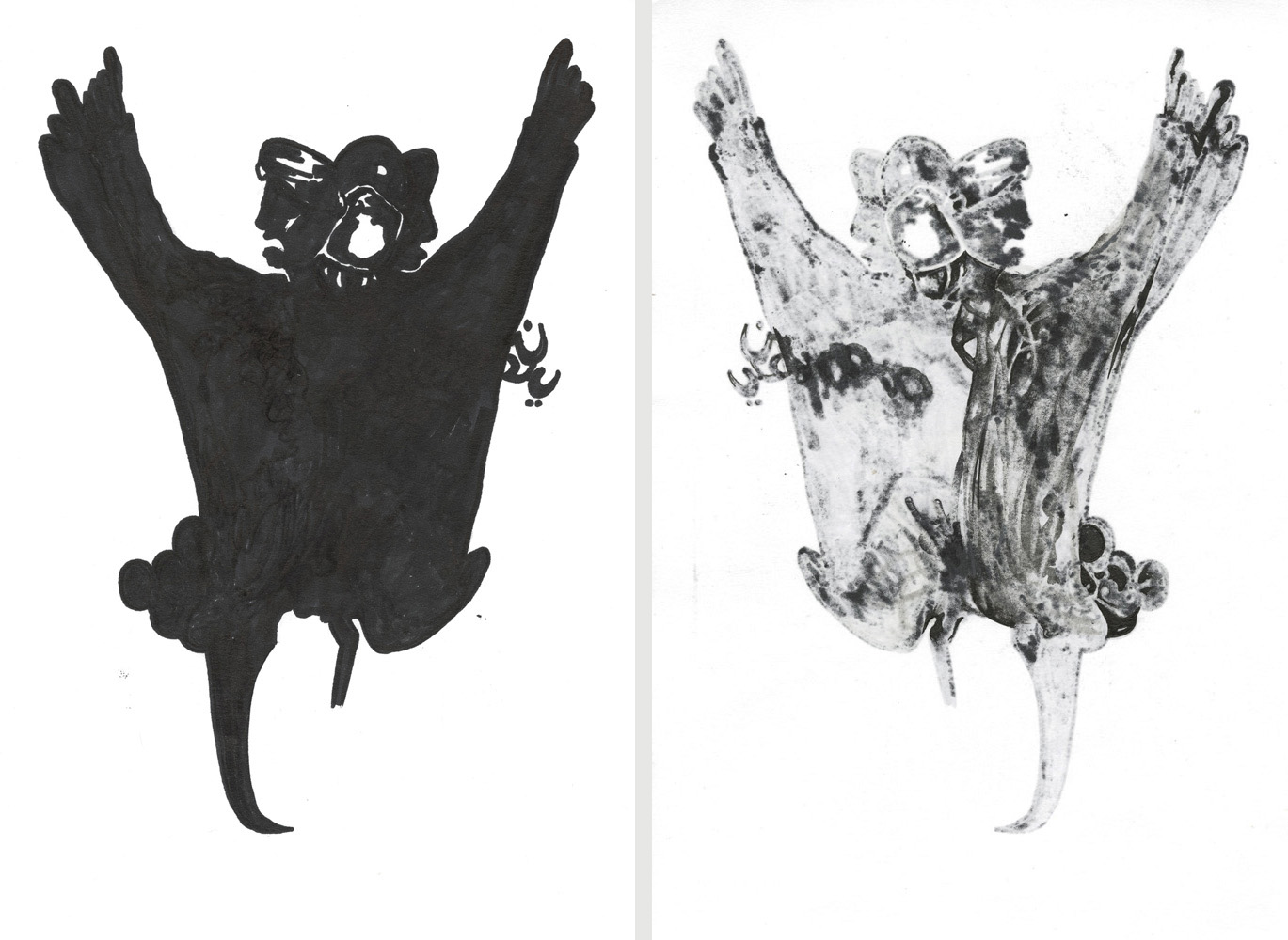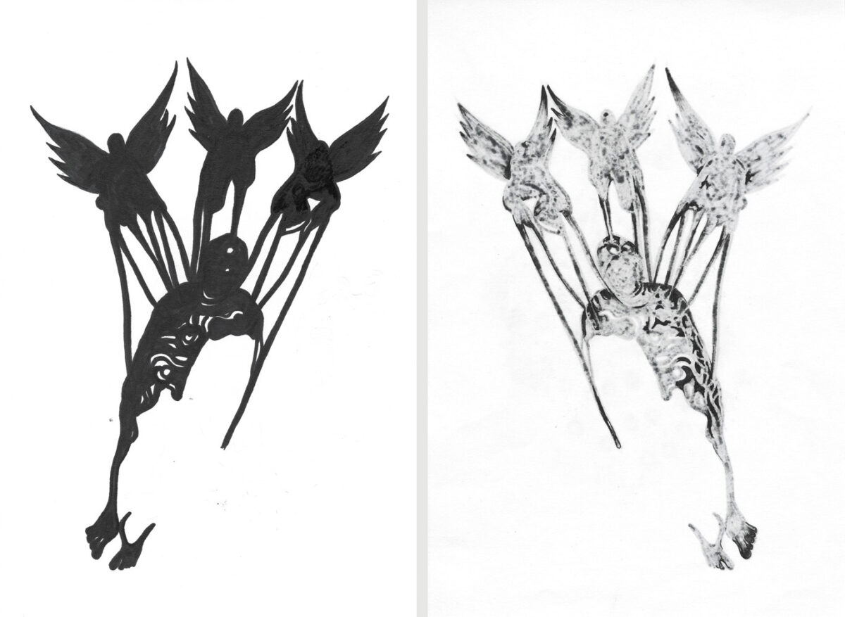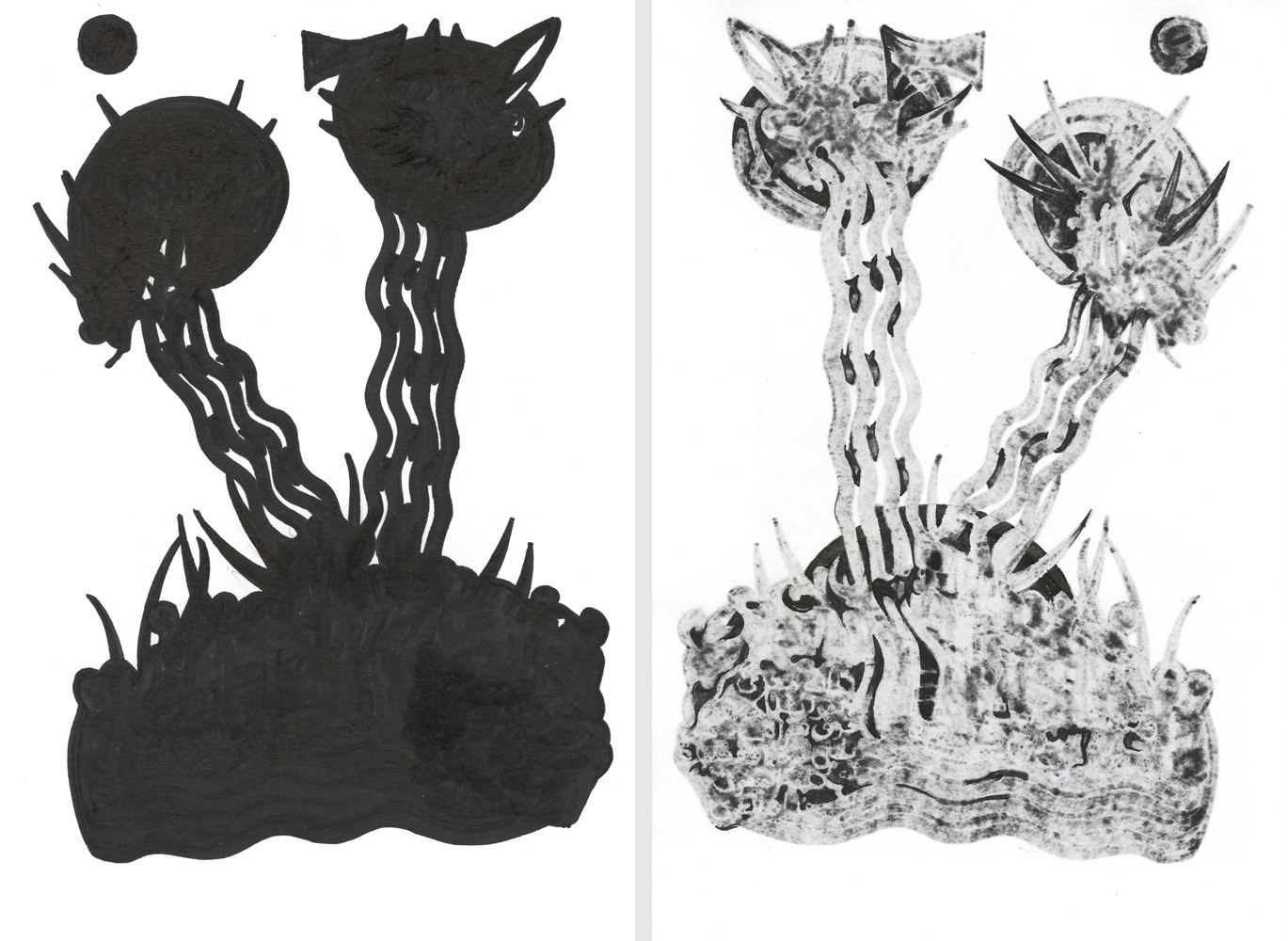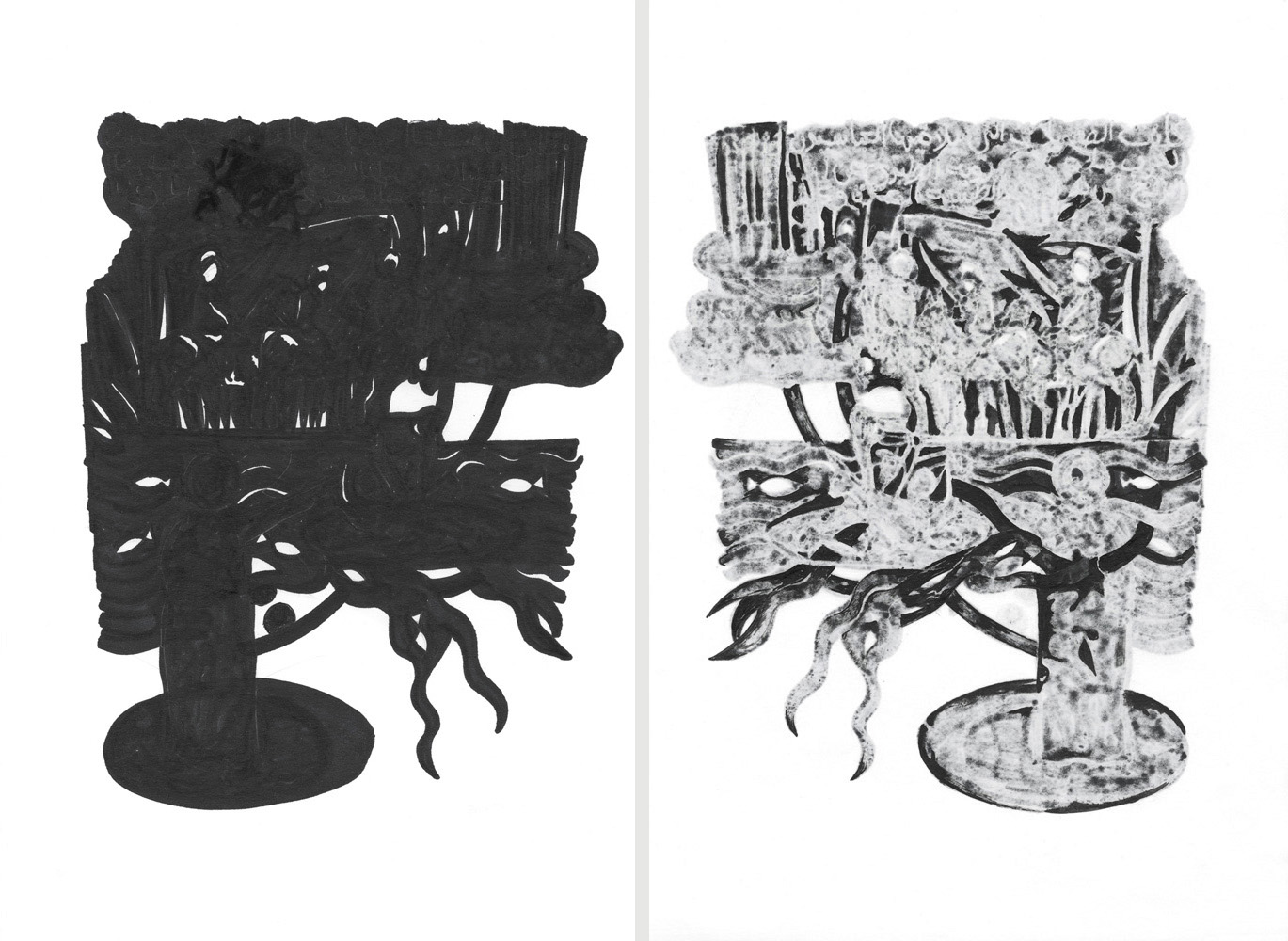 Unmatched Narratives presents the recorded history of the Zanj Rebellion (869–883 CE) as told by the victors. Using drawings formed through ink bleeding across paper, the work unfolds as a mixed-media wall installation stretching across the gallery like a black-and-white archive of historical episodes.