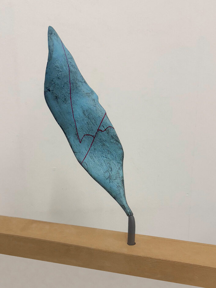 Mounted on parallel wooden beams, What Remains is a composite series of six sculptures translating how landscapes shaped by conflict continue to speak through what survives..